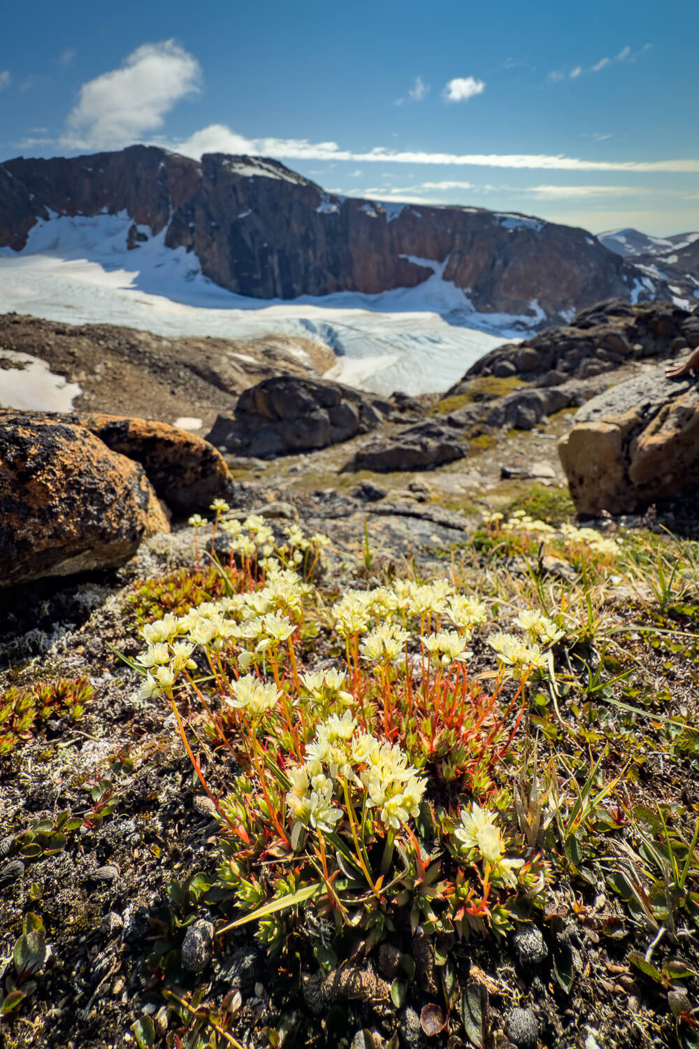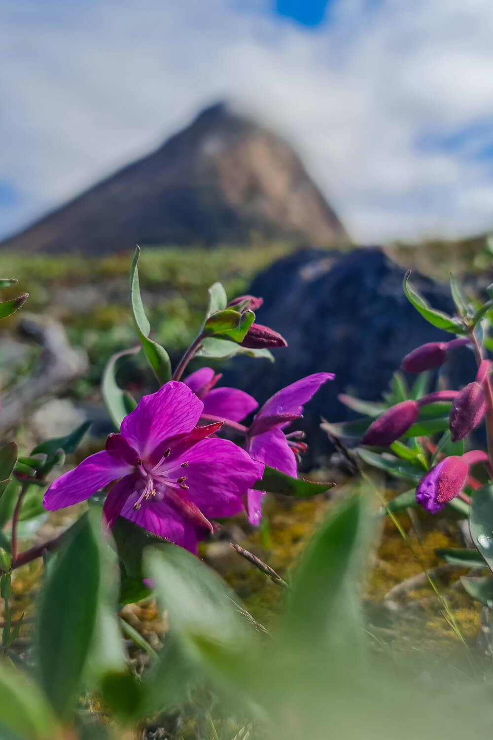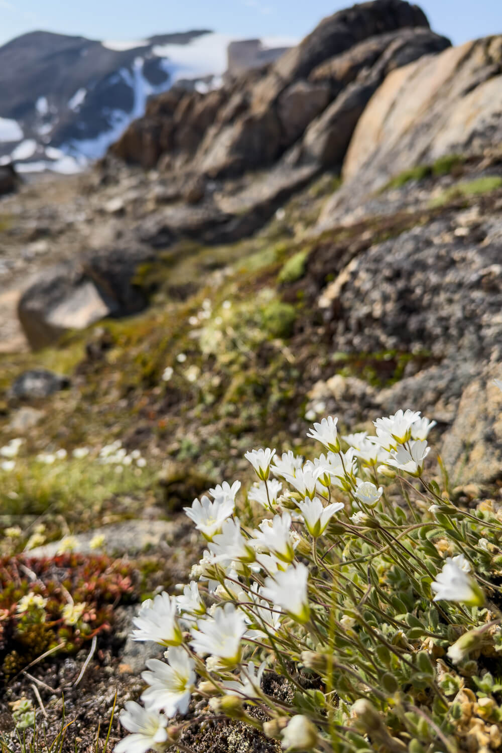 Chmury też odsłoniły pobliską górę przypominającą kształtem nieco Głowę Cukru z Rio de Janeiro. Dookoła kwitła lokalna odmiana wierzbownicy (Chamaenerion latifolium), postrzegana jako narodowy kwiat Grenlandii. W Arktyce roślina ta dostarcza cennych składników odżywczych Inuitom, którzy jedzą jej liście na surowo, gotowane z tłuszczem lub zalewane jak herbata; kwiaty i owoce spożywa się na surowo, a także jako sałatkę do posiłków z tłuszczem fok i morsów. Liście i pędy w smaku przypominają szpinak.