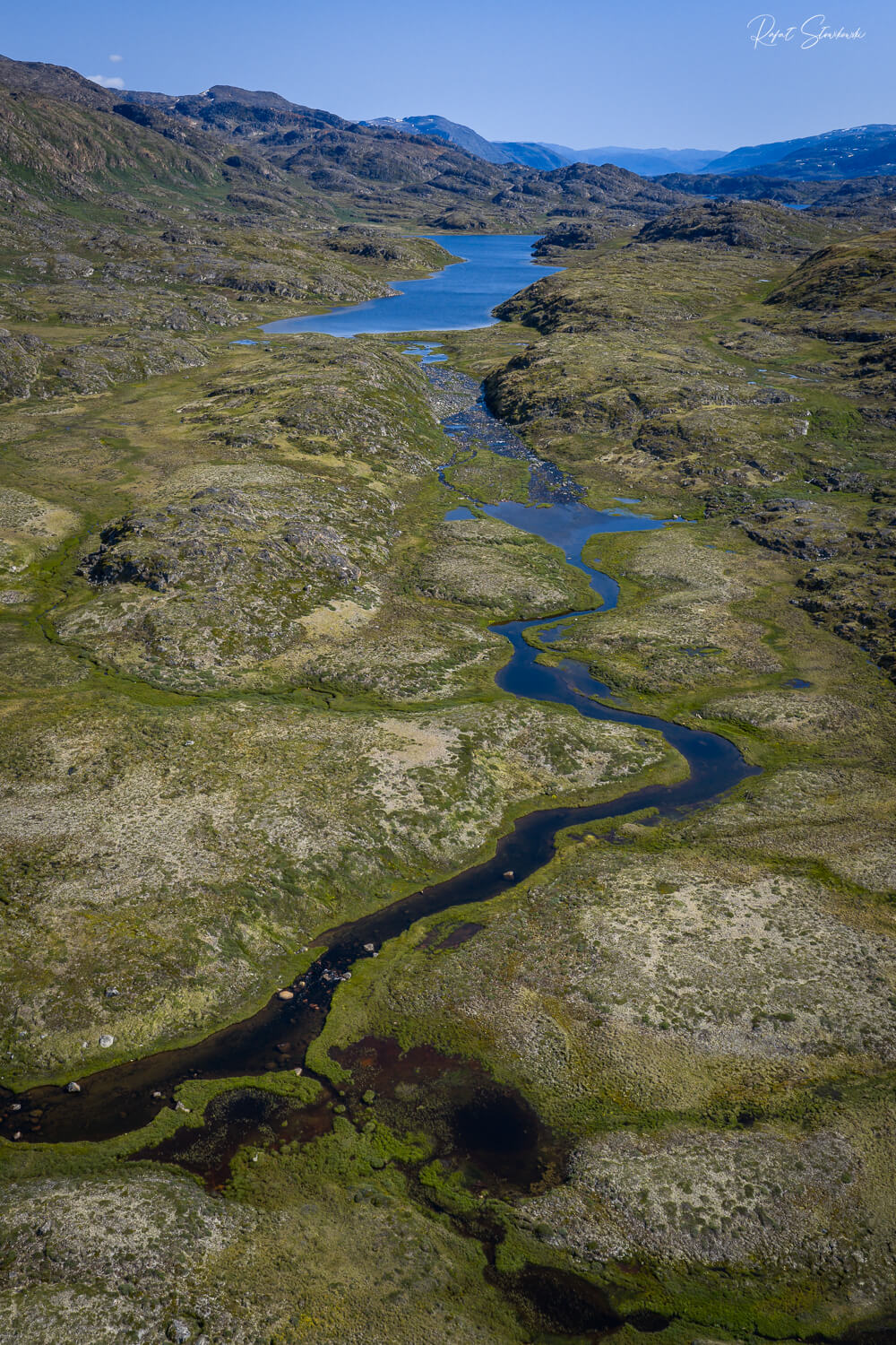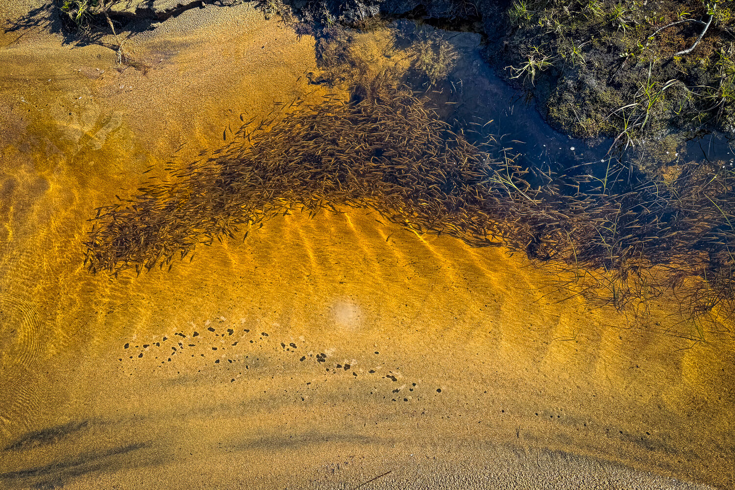 Do jeziora doszliśmy wzdłuż góry. Dron nie po raz pierwszy pomógł zlokalizować wypływ rzeki z jeziora. Idąc doń mijaliśmy olbrzymie skupiska cierników.