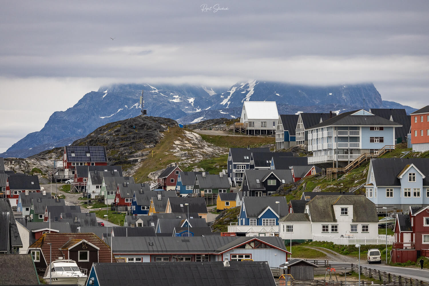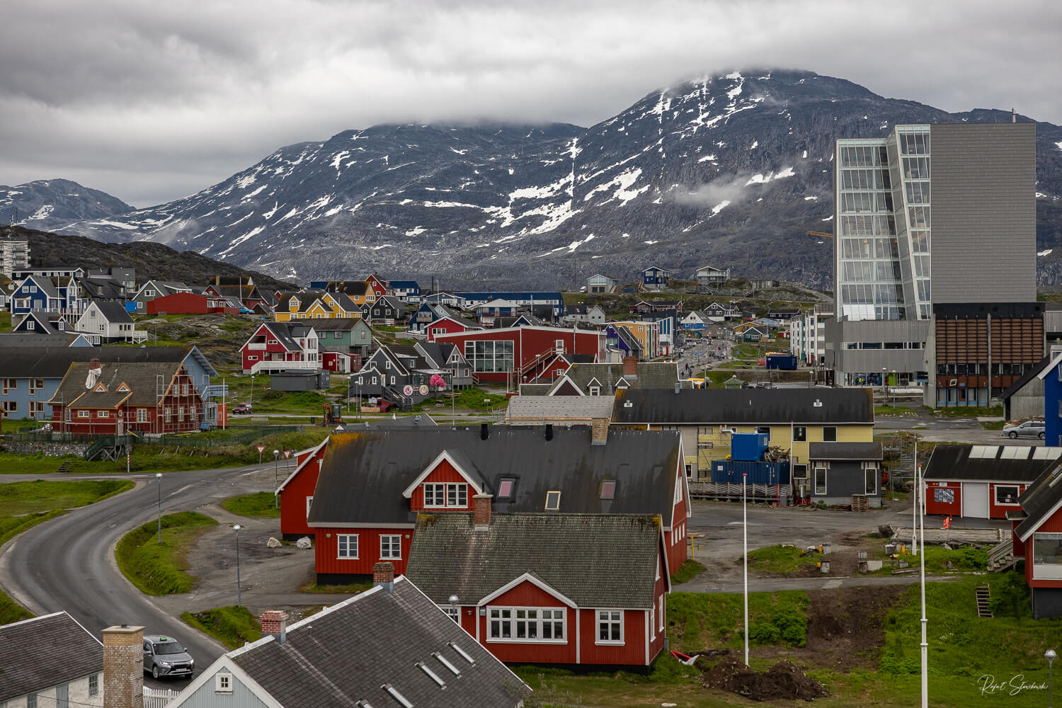 Jedynie typowe dla Grenlandii kolorowe domki dodawały wdzięku miejskiemu krajobrazowi pochmurnego tego dnia Nuuk.
