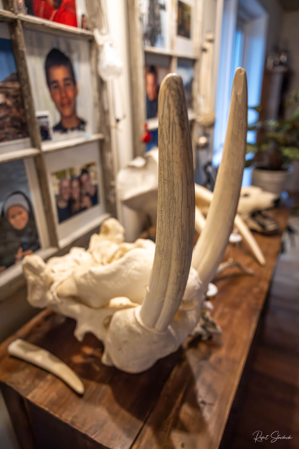 W jednym ze sklepów zaopatrzyliśmy się w tradycyjne kościane okulary dla myśliwych, które chronią oczy przed śniegiem podczas śnieżycy i ograniczają dostęp światła w najsłoneczniejsze dni, kiedy słońce razi podwójnie, odbijając się od śniegu.