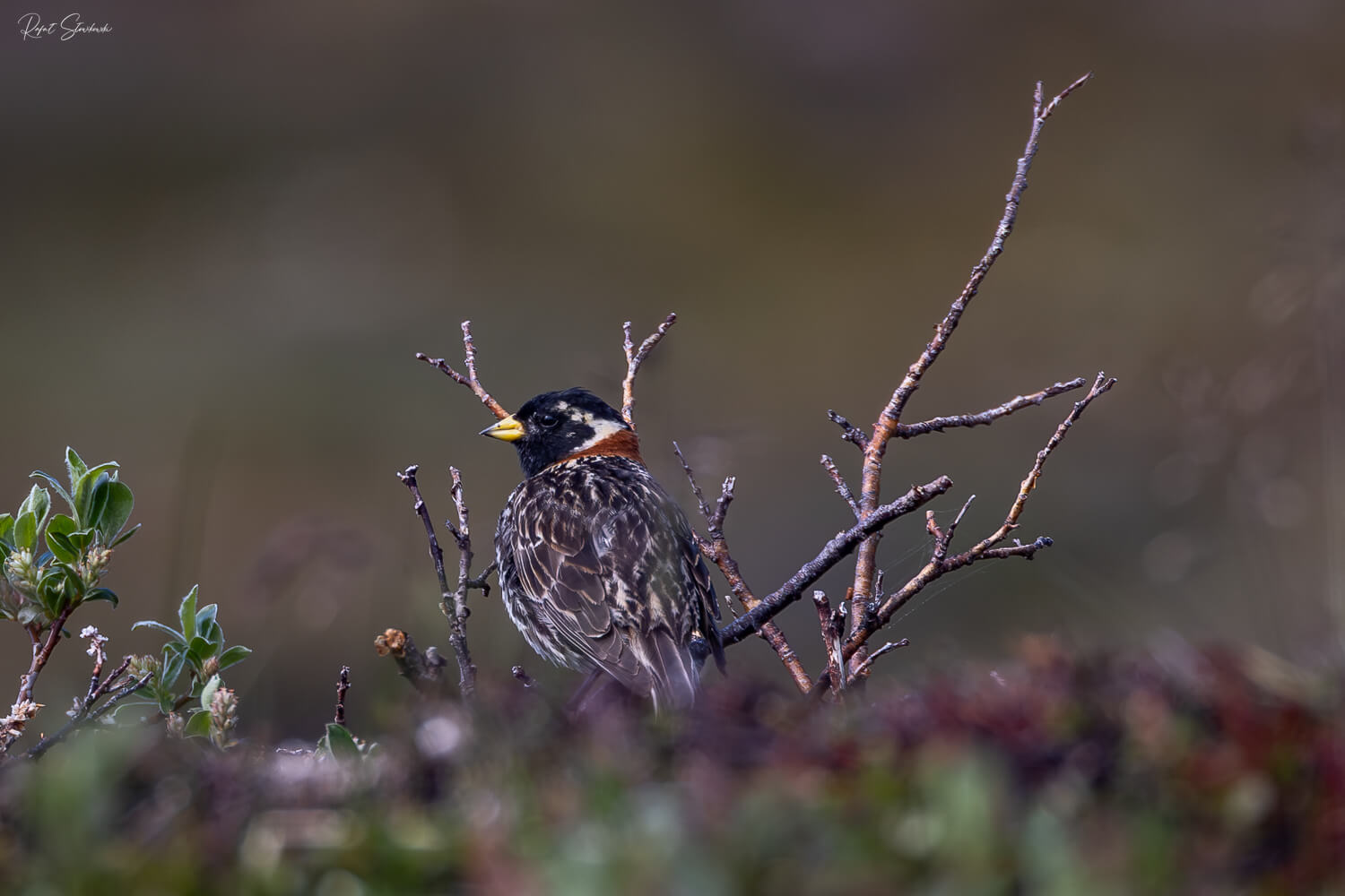 Z pewnością istoty z wędkami w dłoni były zaskoczeniem dla poświerek szponiastych (Calcarius lapponicus). Na zdjęciu samczyk w szacie godowej z charakterystyczną brązową plamką na kołnierzyku.