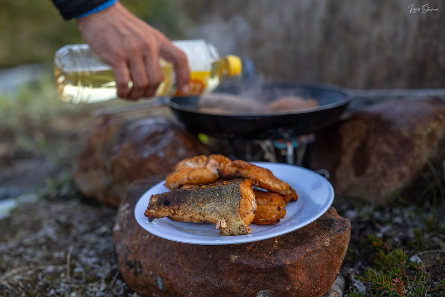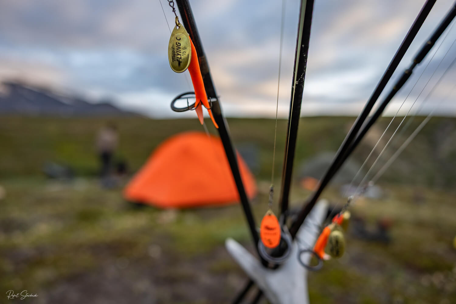 Kuba, którego wodery miały dotrzeć razem z torbą następnego dnia łowił na lekko i na pożyczoną wędkę. Ba – miał tej nocy nawet spać w cudzym namiocie!👻 Od jakiegoś czasu uważamy, że bez względu na limity bagażowe i inne ograniczenia, co jak co ale każdy powinien mieć odrobinę prywatnej przestrzeni i spać w swoim, osobnym namiocie.