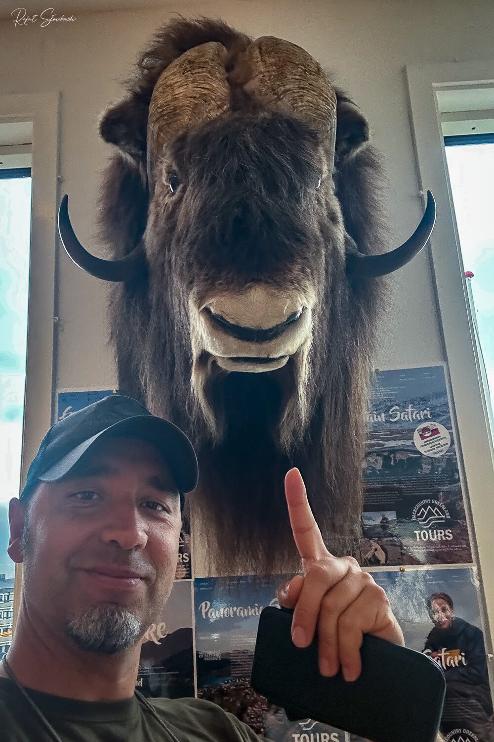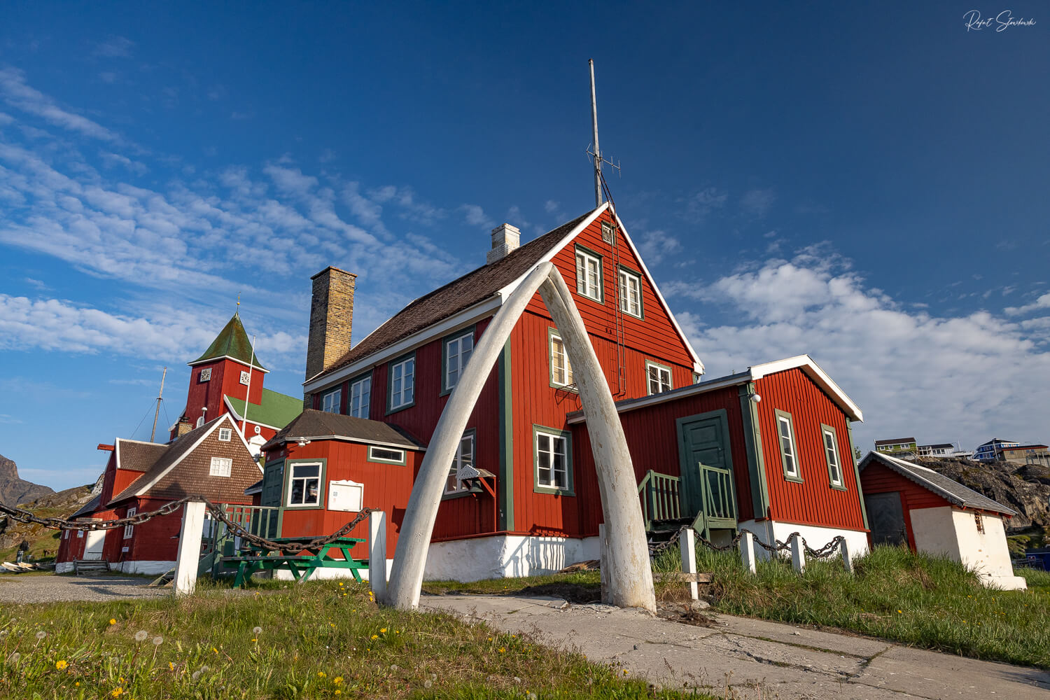 Muzeum historyczno-kulturalne w Sisimiut. Wejście pod łukiem z kości żuchwowych wielorybów. I pomyśleć, że pod czymś podobnym w tym roku chodziłem na Falklandach🙃