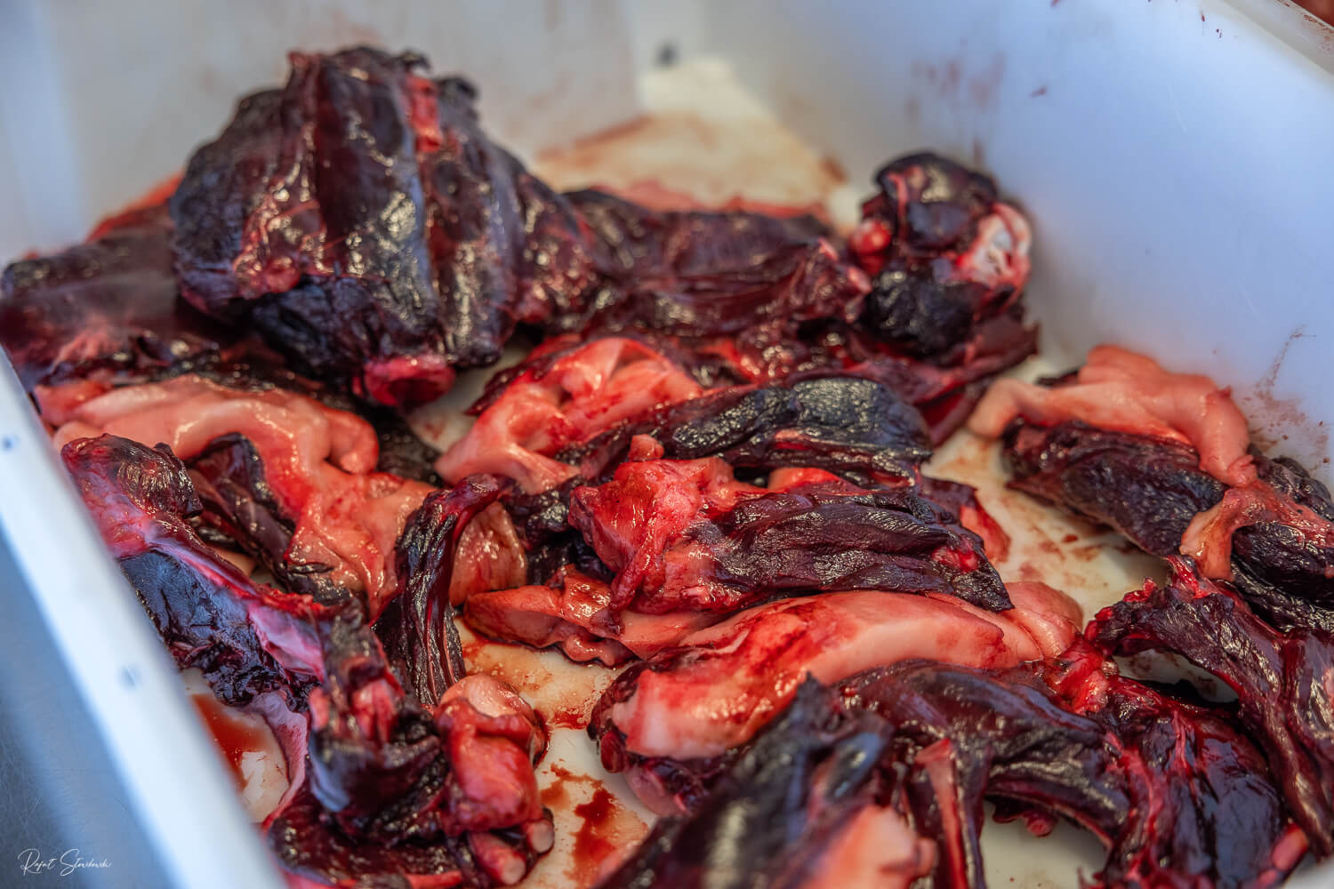 Worek z tego samego materiału, który służył jako boja przytwierdzona liną do harpuna wbitego w ofiarę. Ta nie mogąc zanurkować, w końcu się zamęczała i zdychała.