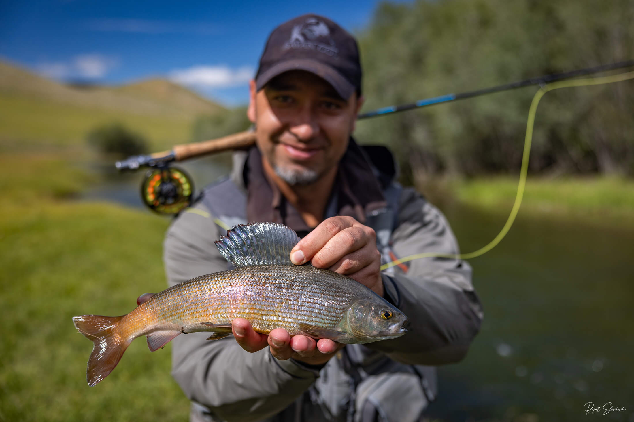 To cały On! Najpierw wypatrzy absurdalnie niepozorne ale jednak możliwe miejsce, potem rewelacyjnie rzuci prezentując perfekcyjnie dobraną muchę a ryby po prostu się tam magicznie materializują, próbując sprostać Jego marzeniom.