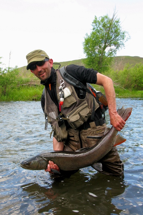 Taka ryba robi wrażenie! A widzicie ogon? Tylko na tej rzece inne tajmienie nadgryzają ogony braci niczym tęczaki na hodowli. W końcu jest ich nie specjalnie mniej.