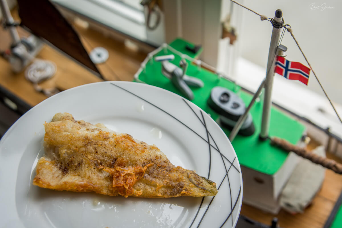 Dobry plamiak. Ryba w moim przekonaniu o marnych walorach smakowych. Norwegowie w morzu swych dziwactw postrzegają ją np jako przysmak. Ponieważ tradycyjnie plamiaka nie łowiono w Norwegii tak często jak dorsza czy czarniaka, był rybą na specjalne okazje, często podawaną w drugi dzień Świąt Bożego Narodzenia.