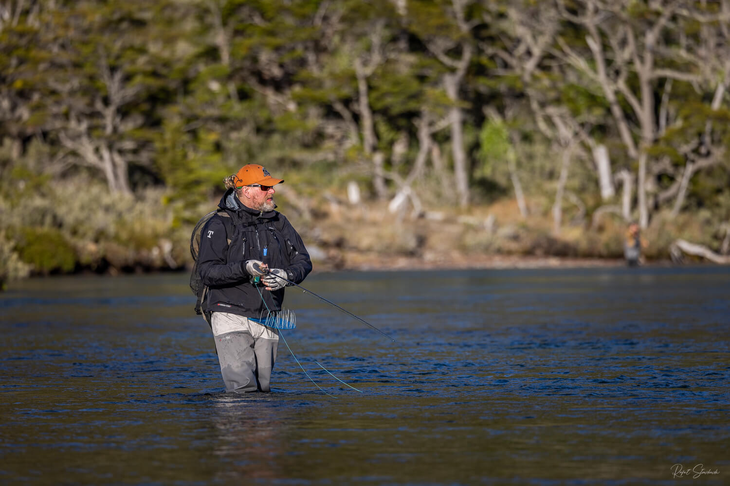 W pierwszej grupie byli praktycznie sami muszkarze i tak jak się spodziewałem – najlepsze wyniki mieli na jeziorku w górach z belly-boat’ów. Wiejący patagoński wiatr dobitnie mi uświadamiał, że prezentacja muchy w zasięgu ryb w porównaniu do spinningu miała się jak 1:10! A mimo to spinning nie zawsze był tak skuteczny. Również na najmniejszych ciekach, nawet mimo wiatru mucha wygrywała ze spinningiem. Druga grupa miała szczególnie niezłe wyniki na Lago Fagnano, trzecia połowiła lepiej niż reszta na Azopardo a czwarta najlepiej połowiła na Rio Grande i także świetnie na Lago Fagnano ale zapuszczając się za rybą daleko na wschód – w stronę Argentyny.