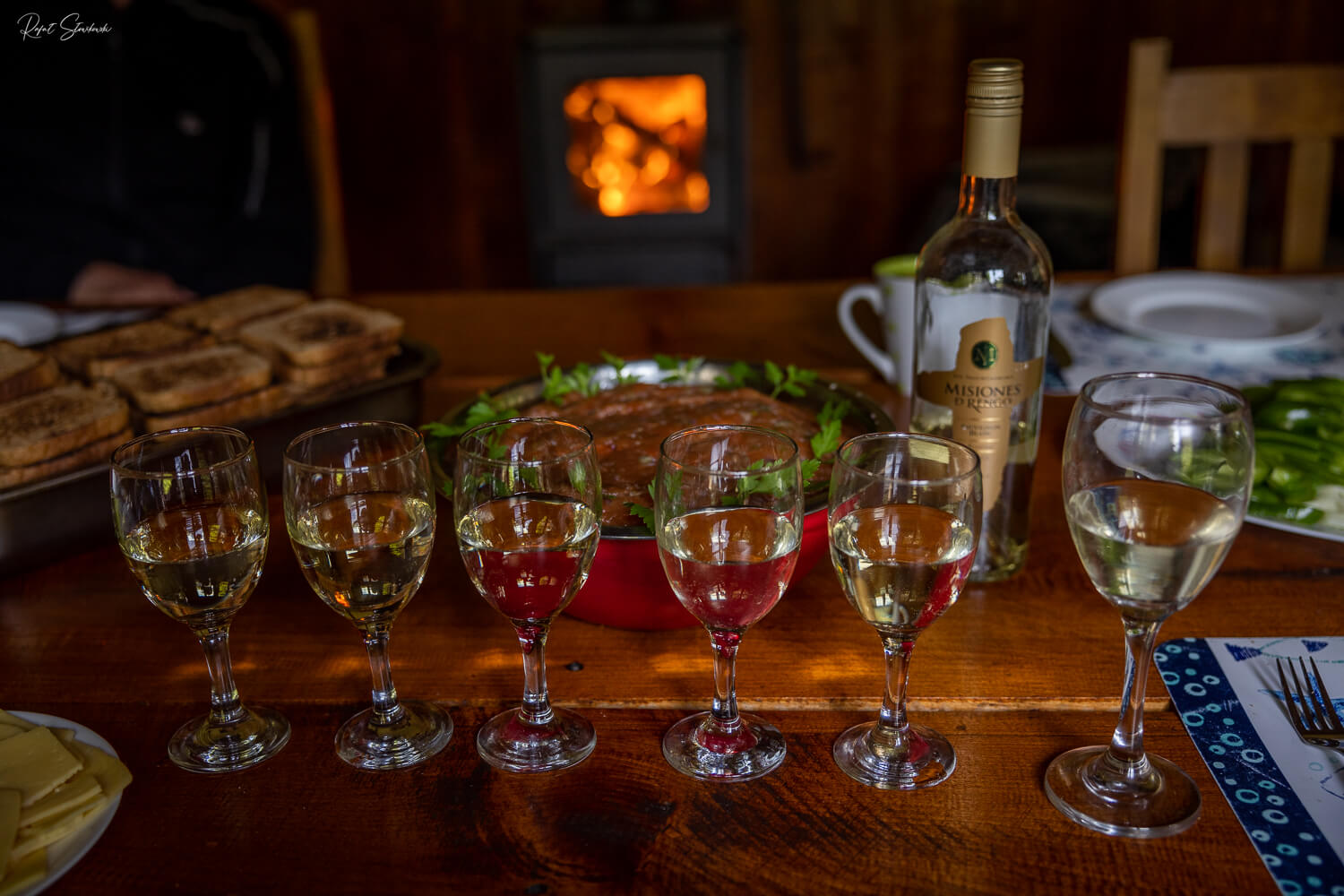 Po 7-8 godzinach jazdy docieramy do pierwszej estancji, która staje się naszym domem na najbliższe cztery noce. Po szybkich kanapeczkach, chłopcy zasuwają przerzucać pierwsze 50-taki w jeziorze, trzysta metrów od domków, a ja rozpakowuję auta i szykuję pierwszą kolację. Zachody słońca i to co dzieje się tam później na niebie są najczęściej fenomenalne.